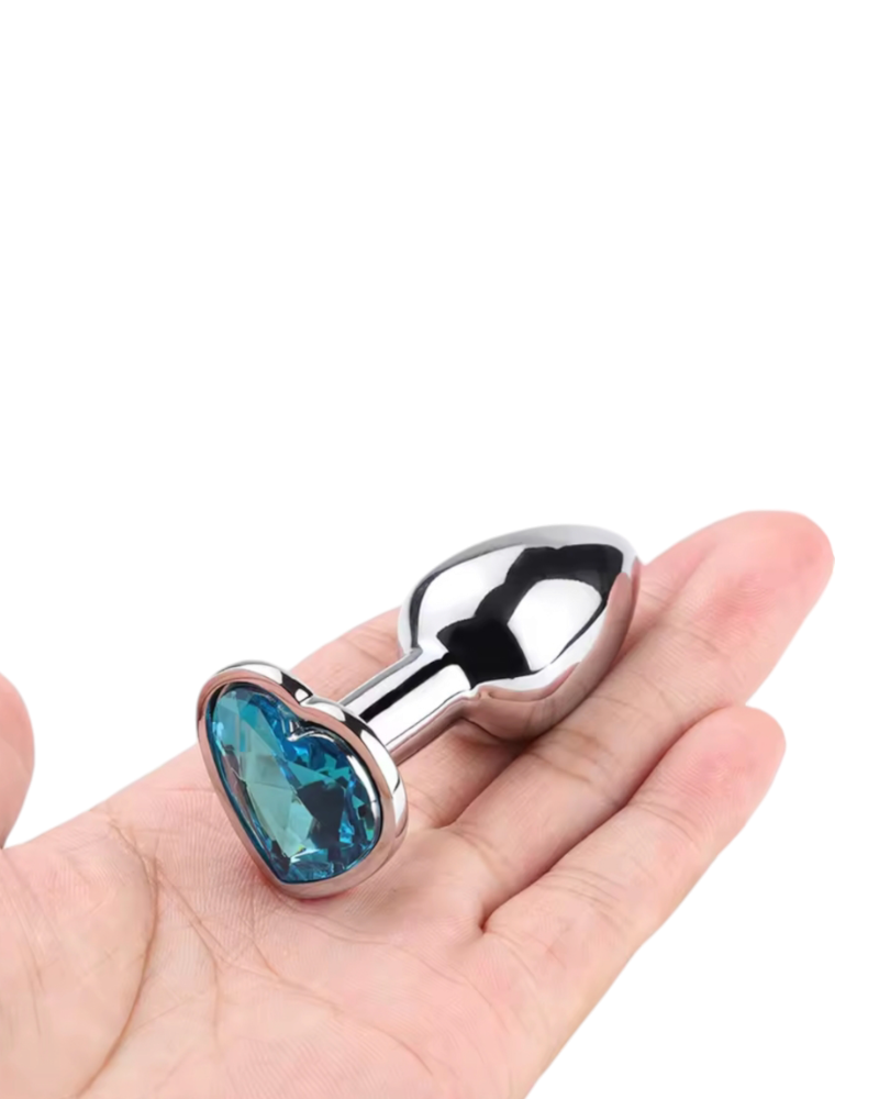 Металлическая анальная пробка серебристая с голубым камушком в форме сердца Sexy desires Heart размер S Avokado