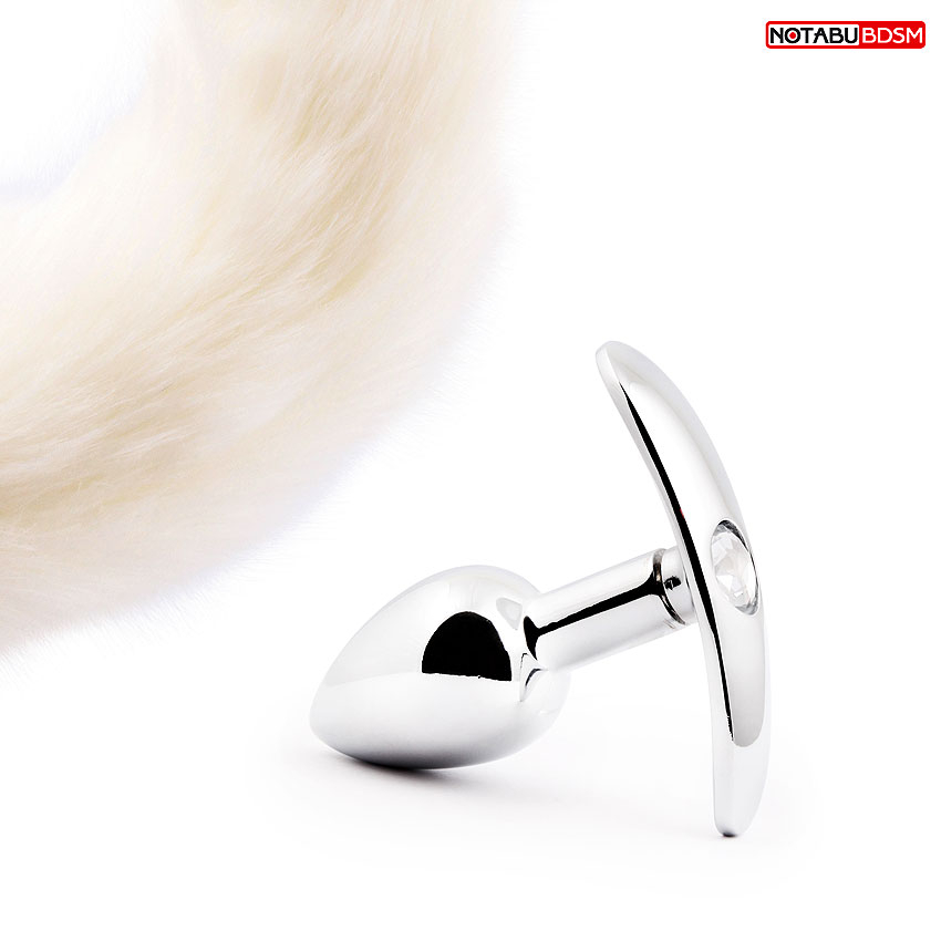 Металлическая анальная втулка со сменным хвостом Notabu L 60 мм D 27 мм белый+подарок ушки Avokado