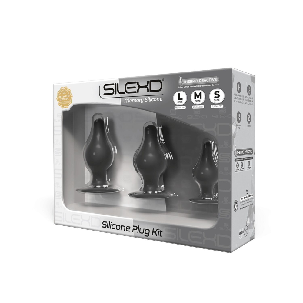 Характеристики Набор анальных двухслойных пробок разного размера черного цвета Silexd Plug Kit 3 штуки Avokado