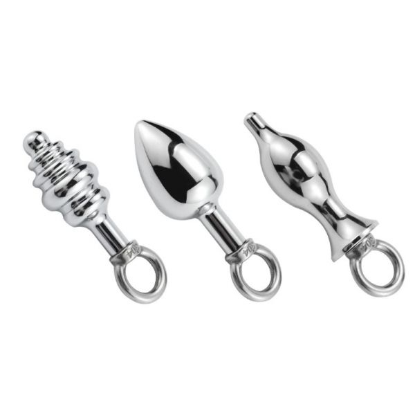 The Latest Multi Purpose Anal Plug Product material: Anal hook (stainless steel), anal plug (high quality space aluminum alloy) Product packaging: carton packaging Package content: Anal hook *1, anal plug *3, lifting ring *1 Weight: 330g