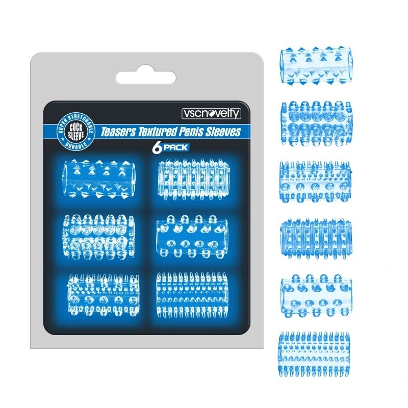 Набор насадок на член голубого цвета Vscnovelty Teasers Textured Penis Sleeves 6 штук Avokado