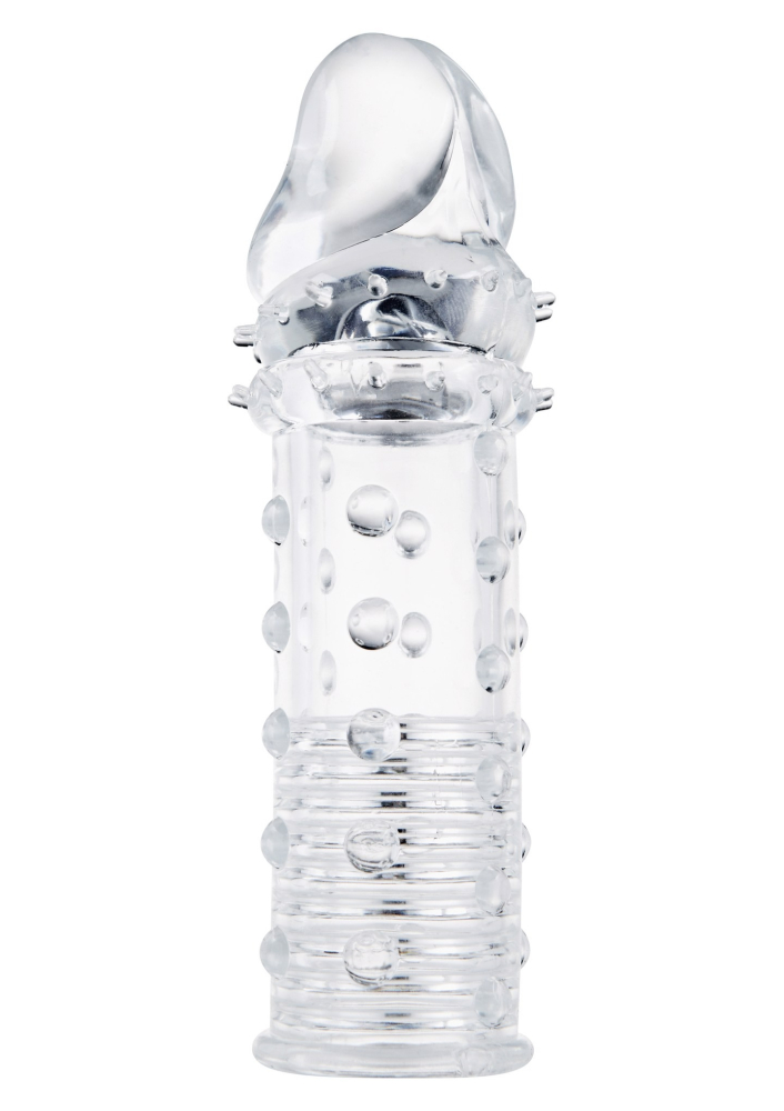 Удлиняющая насадка на член рельефная Power Stud Sleeve прозрачная, 15.5 х 3 см