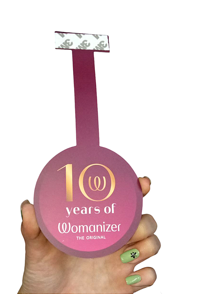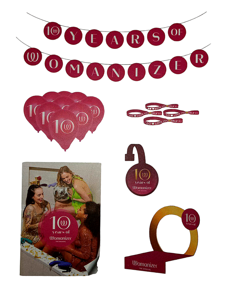 Отпразднуйте 10-летие Womanizer, устроив привлекательную демонстрацию с помощью ,,Набора для празднования 10-летия Womanizer.