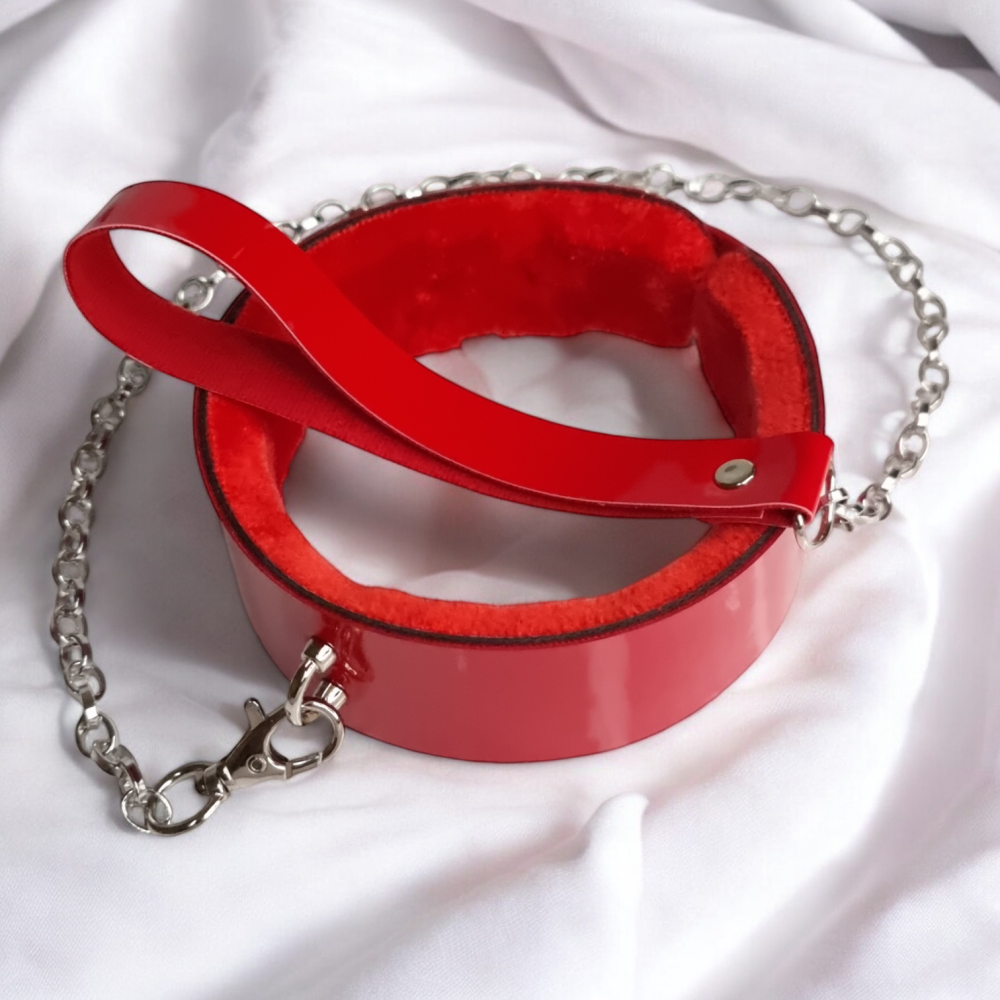 Подарочный набор для фиксации наручники и ошейник с поводком из эко лака красного цвета Flirty Collection Avokado