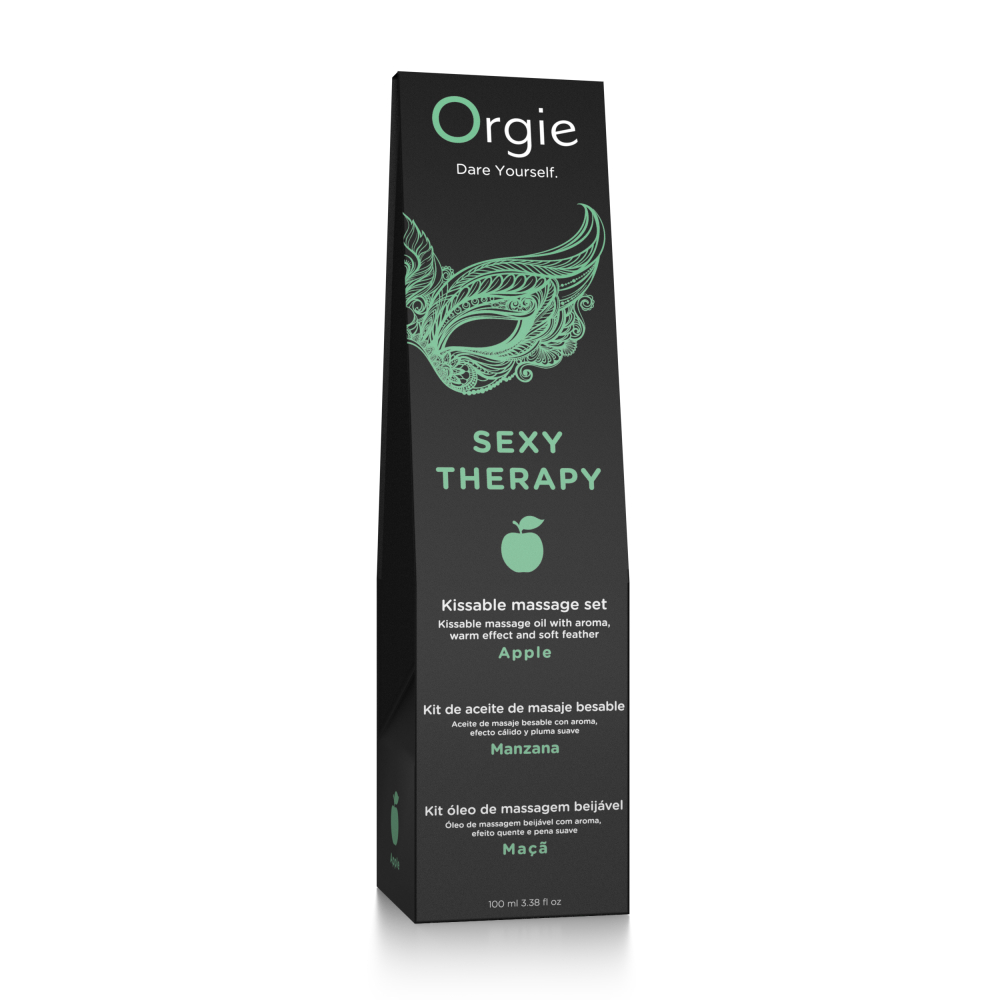 Подарочный набор съедобное массажное масло со вкусом яблока + перо Orgie Avokado
