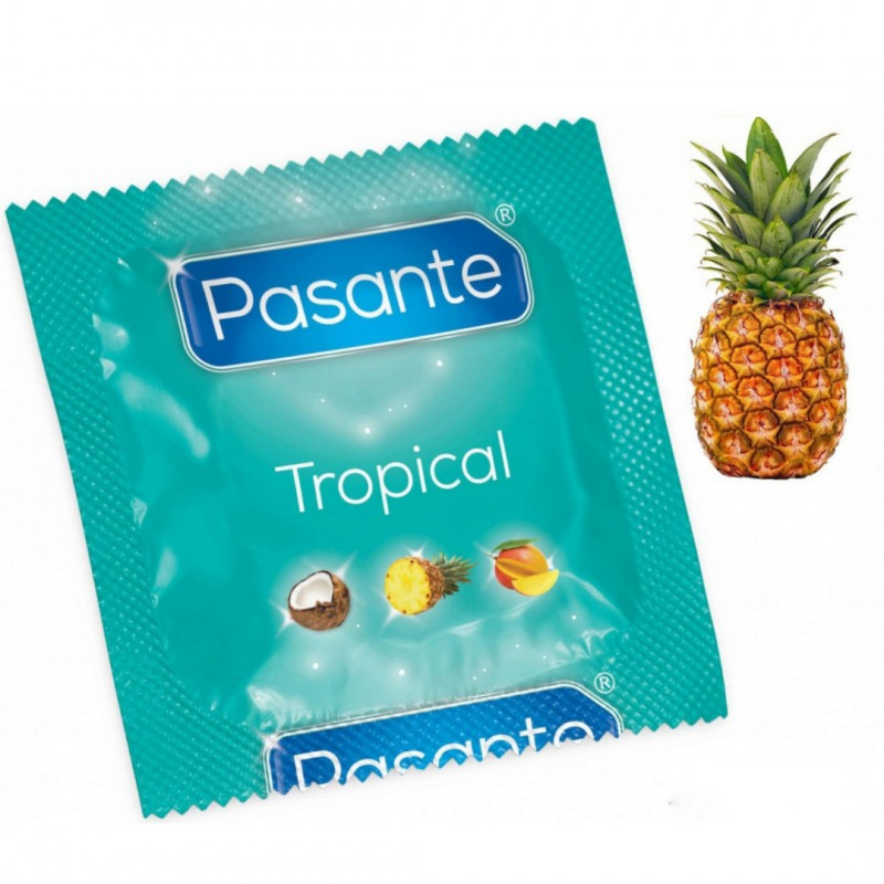 Презервативы Pasante Tropical condom, с ананасовым ароматом и вкусом, призваны добавить новые яркие краски и непередаваемые ощущения в вашу интимную жизнь. Эти презервативы – это не просто средство контрацепции. Они – путешествие в мир удовольствия и наслаждения, где ананасовая страсть пробуждает вашу чувственность и жажду приключений. Обаяние ананаса придает интимным моментам новые ощущения и страсти. Изготовлены из высококачественного натурального латекса, что обеспечивает надежную защиту. Диаметр 53 мм обеспечивает комфорт и идеальную посадку, подходит для большинства мужчин. Прозрачная и гладкая текстура позволяет наслаждаться максимальным ощущением близости.