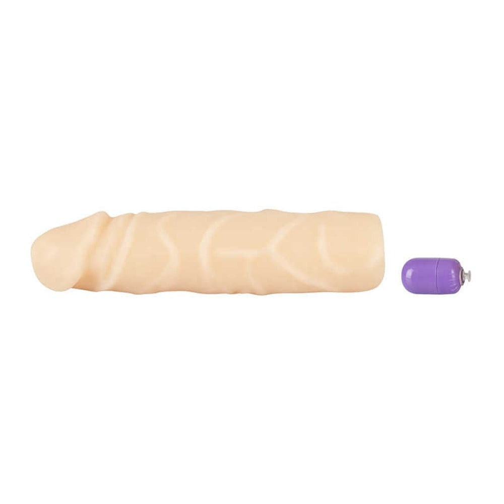 Реалистичная насадка для увеличения члена Nature Skin с вибрацией, телесная