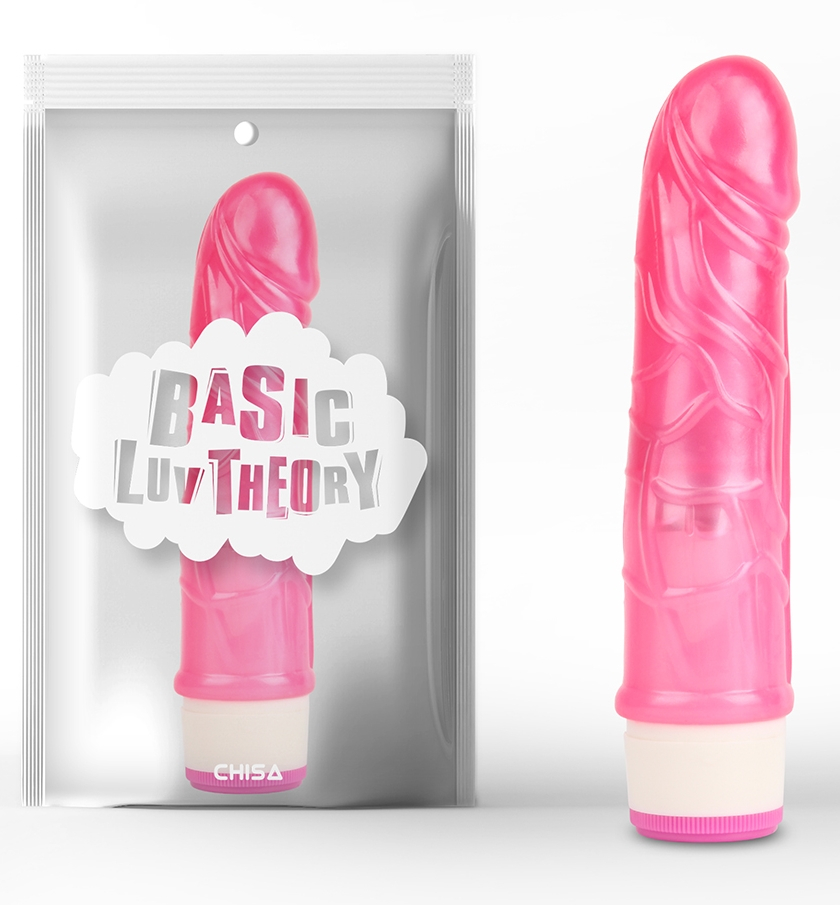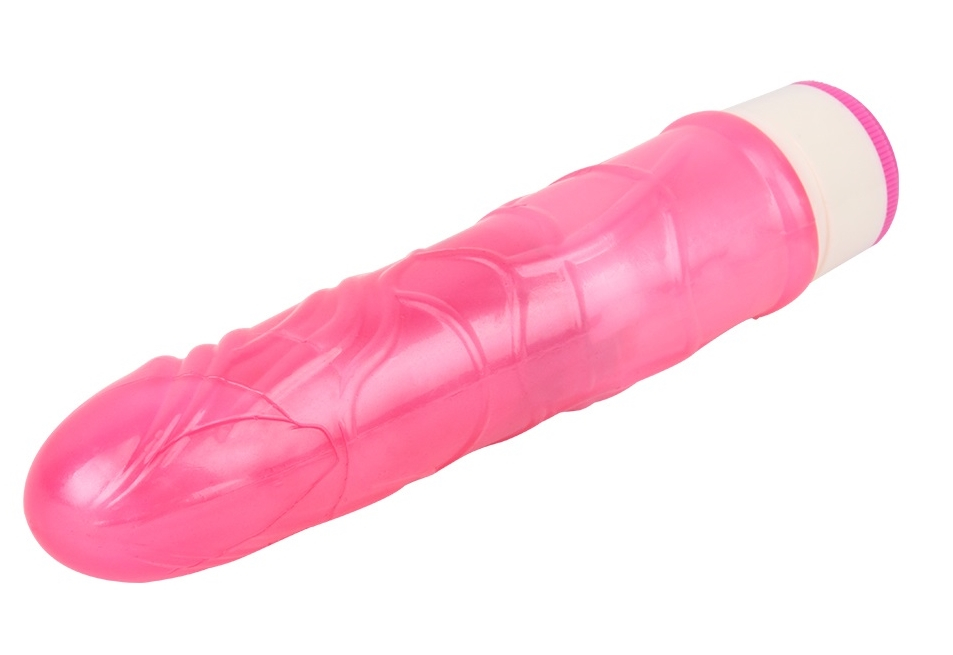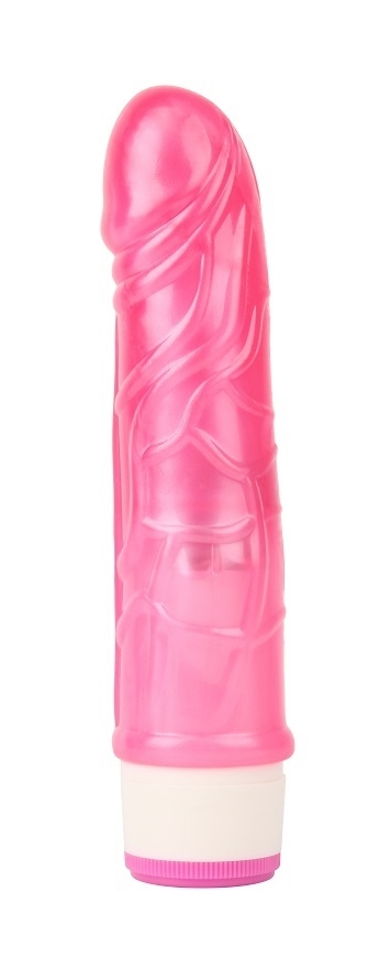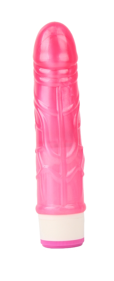 Вибромассажер розового цвета, изготовлен из мягкого материала.