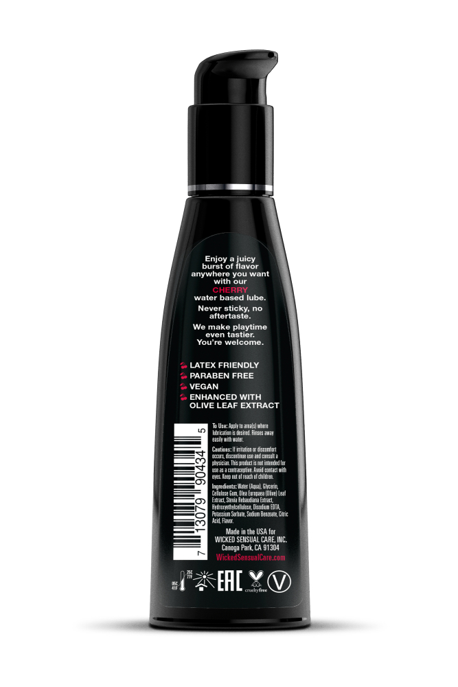 Лубрикант Wicked Aqua Cherry, который можно поцеловать и облизать , добавляет тонкий и вкусный натуральный аромат, чтобы усилить оральное удовольствие.