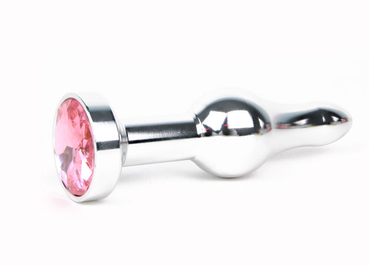Характеристики Серебряная анальная пробка L 103 мм D 28 мм, вес 80г с розовым кристаллом Avokado