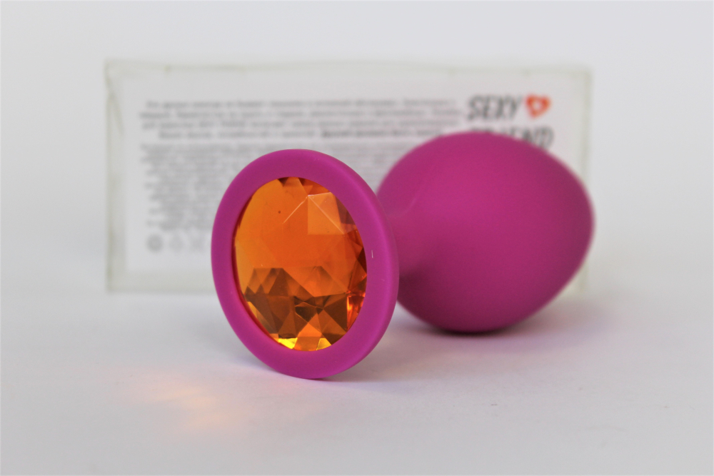 Характеристики Силиконовая анальная пробка цвета фуксия с оранжевым стразом Sexy Friend L 95 мм, D 40 мм Avokado