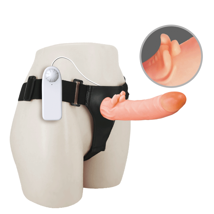 Страпон из мягкого материала снабжен вибропулей у основания головки, а основание фаллоимитатора выполнено в виде вагины-девственницы. Может использоваться как мужским, так и женским полом как страпон либо как мастурбатор с вибрацией. Мягкая регулировка вибрации. В комплекте лубрикант.