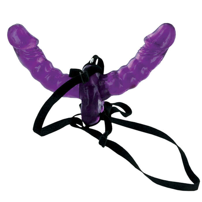 Регулируемый эластичный ремешок с текстурированным двойным фаллоимитатором и яичками посередине. Оба больших фаллоимитатора доставляют удовольствие благодаря своей необычной рифленой текстуре. Это означает, что и пассивный, и активный человек получают стимуляцию одновременно.