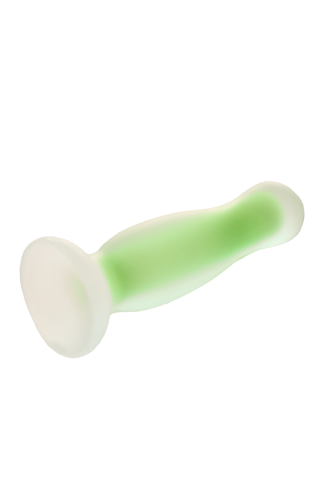 Светящаяся в темноте анальная пробка от лейбла Dream Toys Radiant, изготовленная из мягкого и полупрозрачного силикона с прочной присоской для использования без помощи рук.