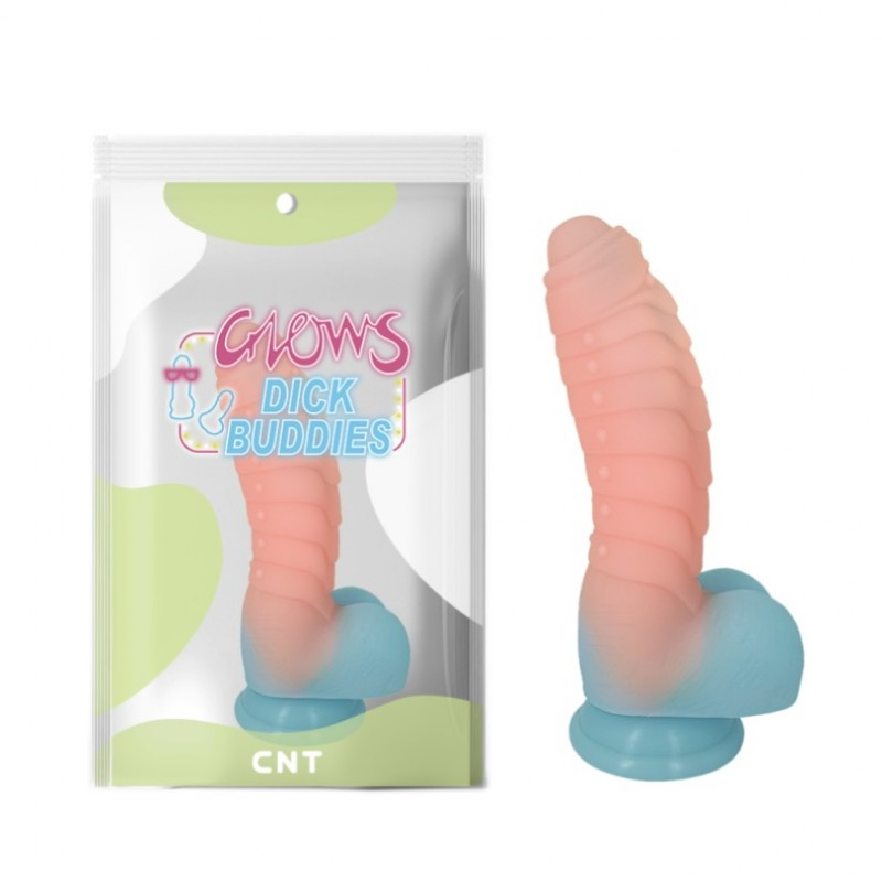 Светящийся фаллоимитатор с ребрышками на присоске цветной Cnt Mech Avokado