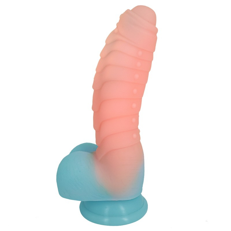 Характеристики Светящийся фаллоимитатор с ребрышками на присоске цветной Cnt Mech Avokado