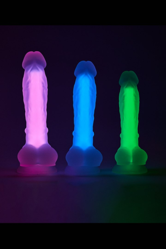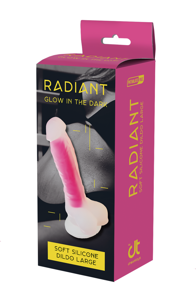 Светящийся в темноте фаллоимитатор от лейбла Dream Toys Radiant, изготовленный из мягкого и полупрозрачного силикона с прочной присоской для использования без помощи рук.