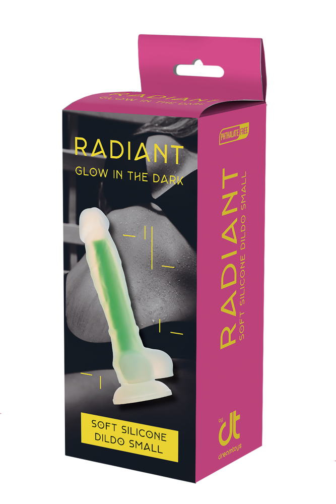 Светящийся в темноте фаллоимитатор от лейбла Dream Toys Radiant, изготовленный из мягкого и полупрозрачного силикона с прочной присоской для использования без помощи рук.