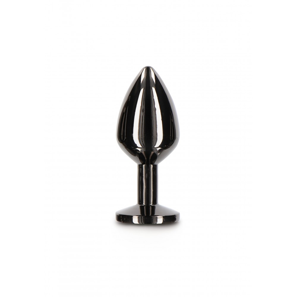 Ця вишукана анальна пробка зроблена з легкого та гладкого алюмінію з елегантним чорним акцентом та штучним каменем на основі.