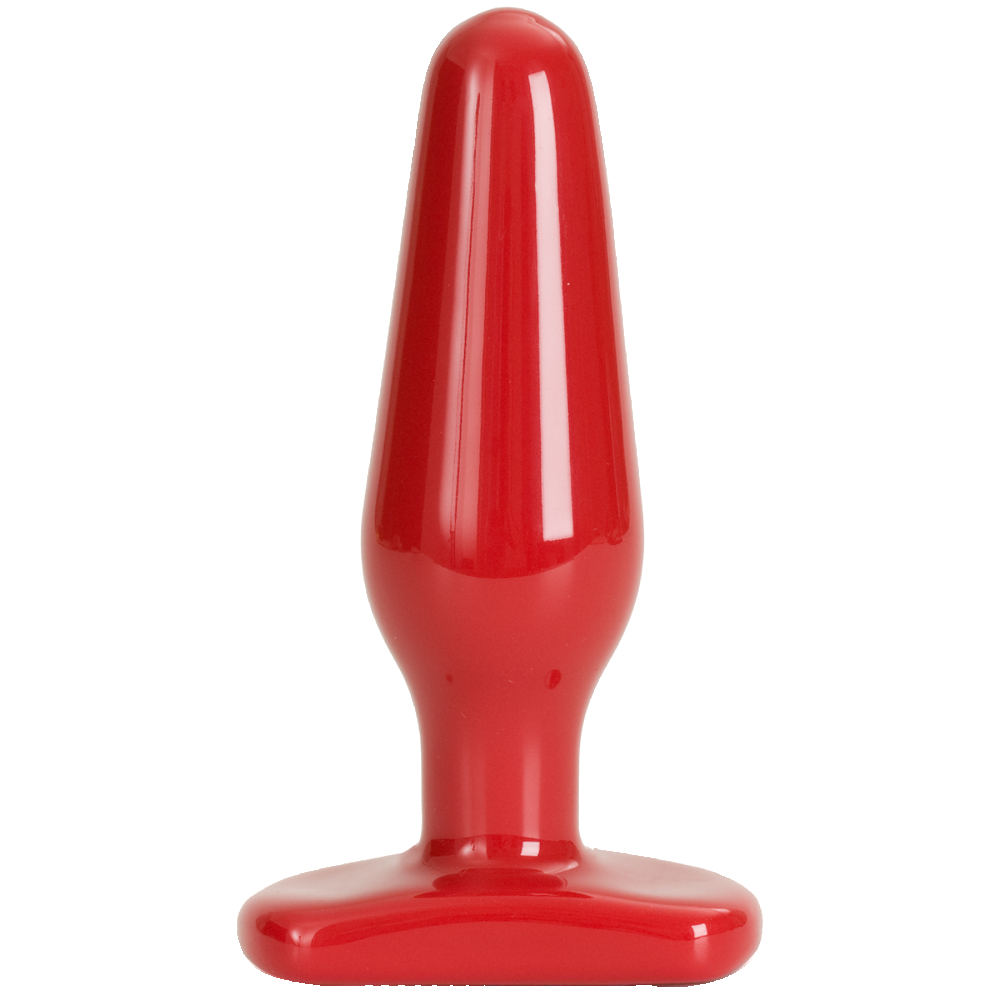 Червона анальна пробка з колекції RED boy з обмежувальним підставою. Розмір MEDIUM. Гладка на дотик, не має швів. Виготовлена з м'якого ПВХ і застосуванням антибактеріальної добавки SIL-A-GEL. Загальна висота-14см, максимальний діаметр - 4 см.