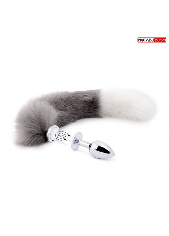 Анальна пробка з металу з хвостом (на магніті) Notabu сіро-білий Авокадо