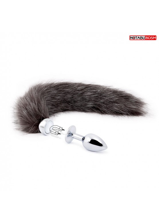 Анальна пробка з металу з хутряним хвостом Notabu сіра (на магніті) розмір S Авокадо