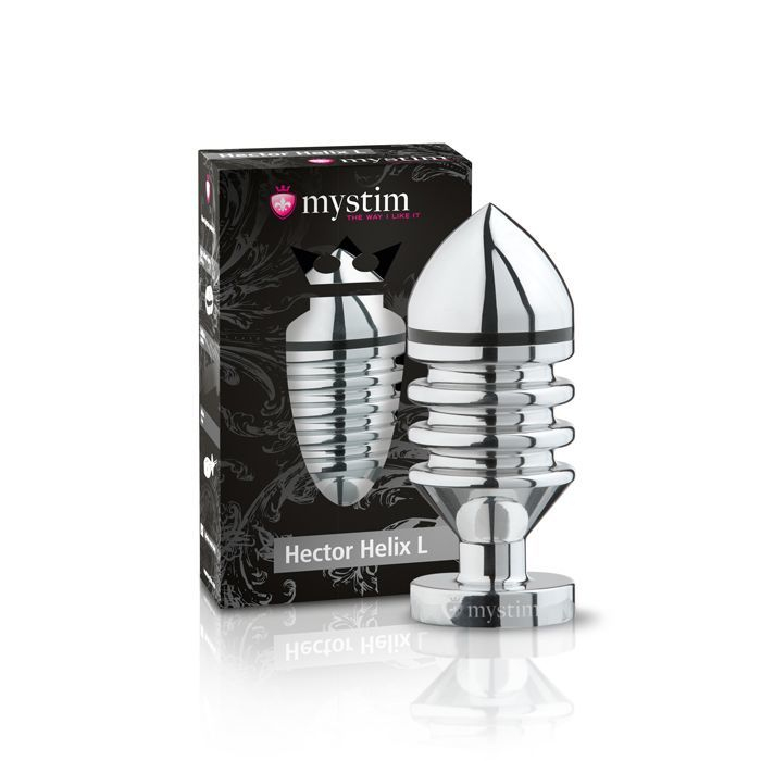 Пропонуємо купити анальну пробку Mystim Hector Helix Buttplug L з гладкого металу з трьома ребрами, кожне з яких ви відчуєте окремо. Вас чекає щось більше, ніж пробка ідеальної форми! Відмінна струмопровідність і два полюси для приєднання електродів дозволять вивести анальну стимуляцію на новий рівень, додавши ще й вплив електрикою. Пробка діаметром 5 см з конічним наконечником для комфортного введення.