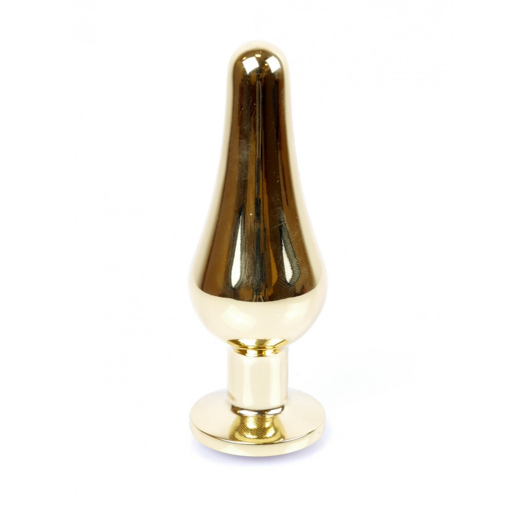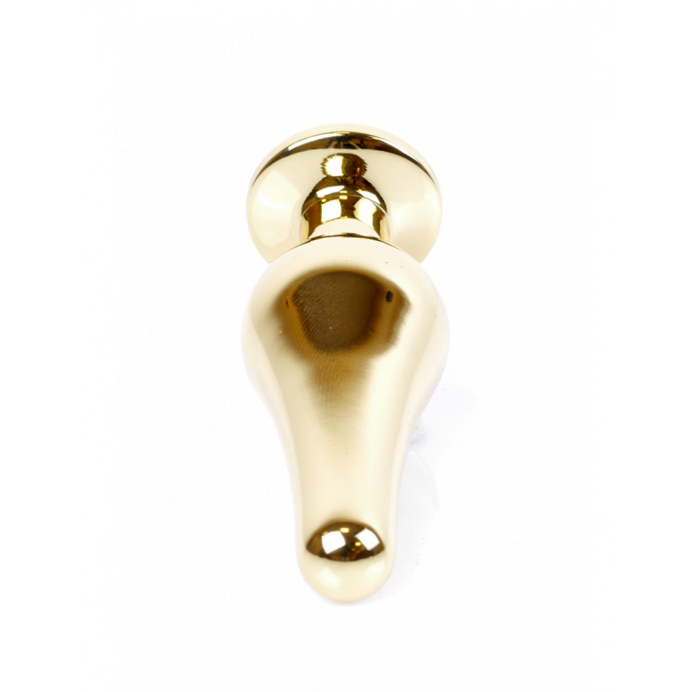 Анальний корок з круглим кристалом, з витягнутим кінчиком, металевий, золотистий, 9.5 х 3 см.