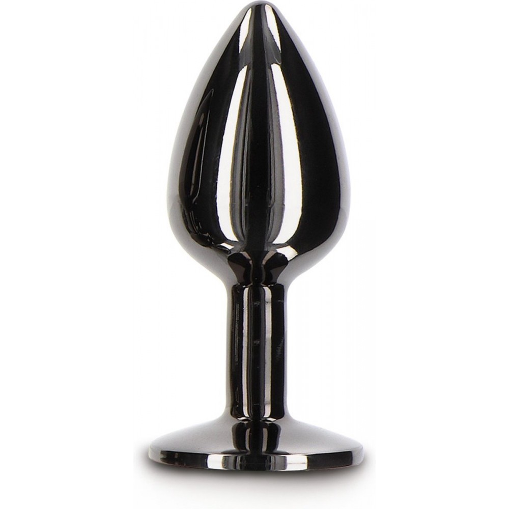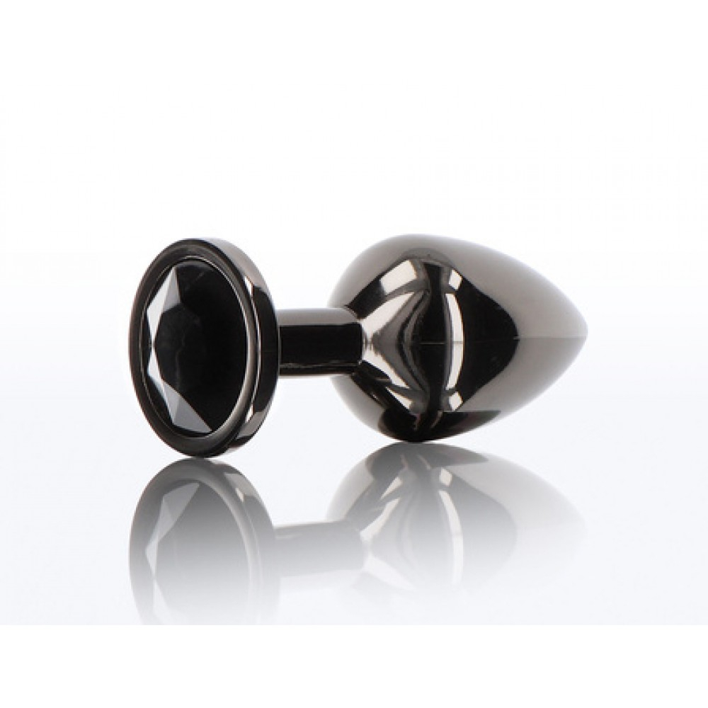 Анальний плаг з каменем, розмір S, металева, чорна, 7.2 х 2.7 см