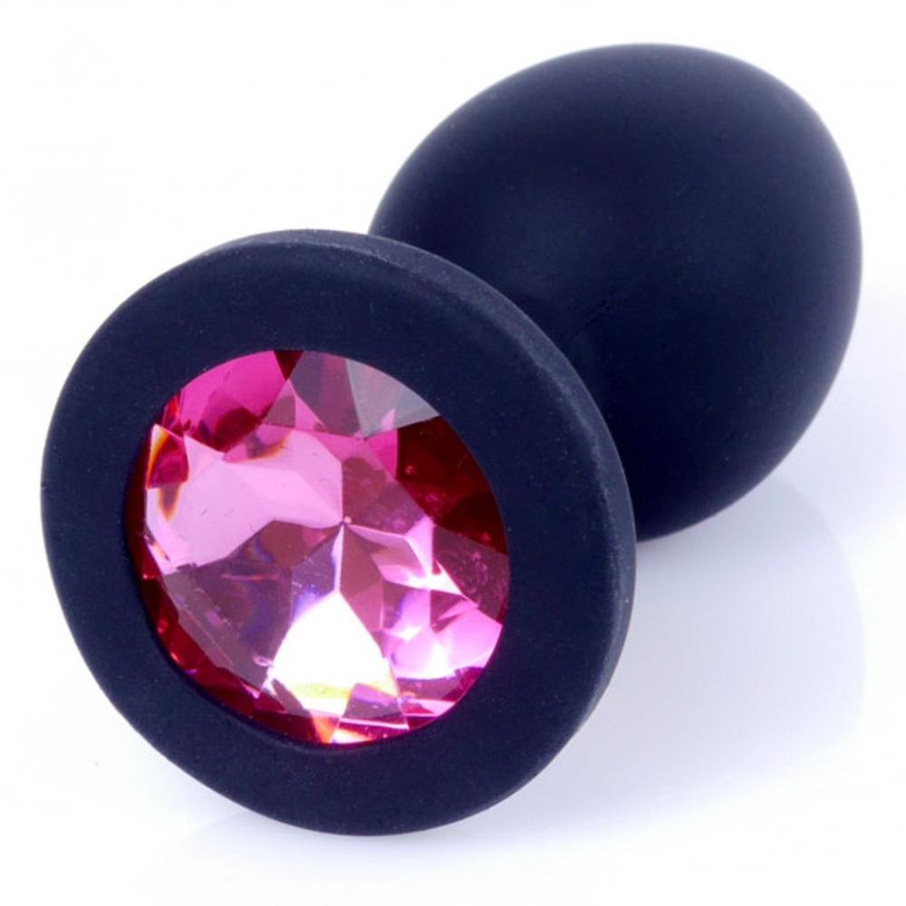 Анальний корок силіконовий чорного кольору з рожевим камінчиком Boss series Jewellery Авокадо