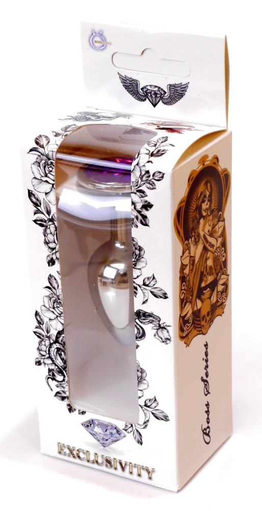Анальна пробка S сріблястого кольору із кристалом фіолетового кольору BOSS of TOYS Jewellery plug Авокадо