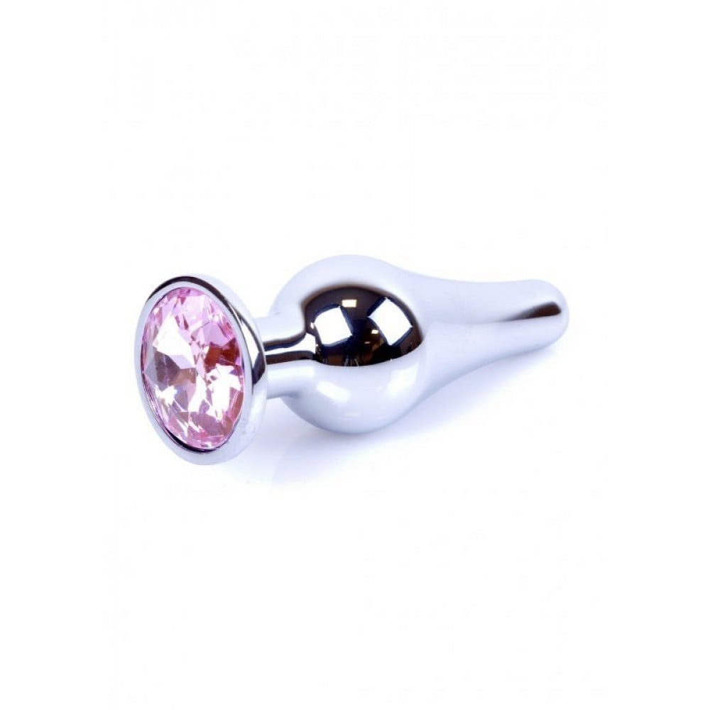Анальна пробка з круглим кристалом, з витягнутим кінчиком, металева, срібна, 9.5 х 3 см