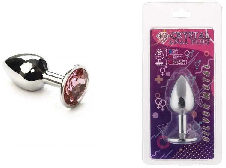 Металева анальна пробка для початківців з кристалом "Рожевий топаз".