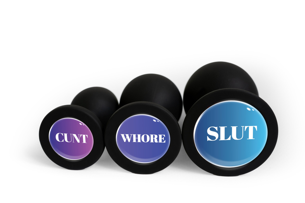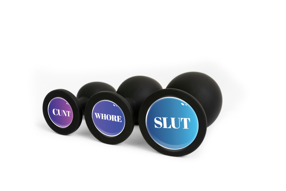 Анальна пробка силіконова чорна з написом Slut OKOVA розмір S Авокадо