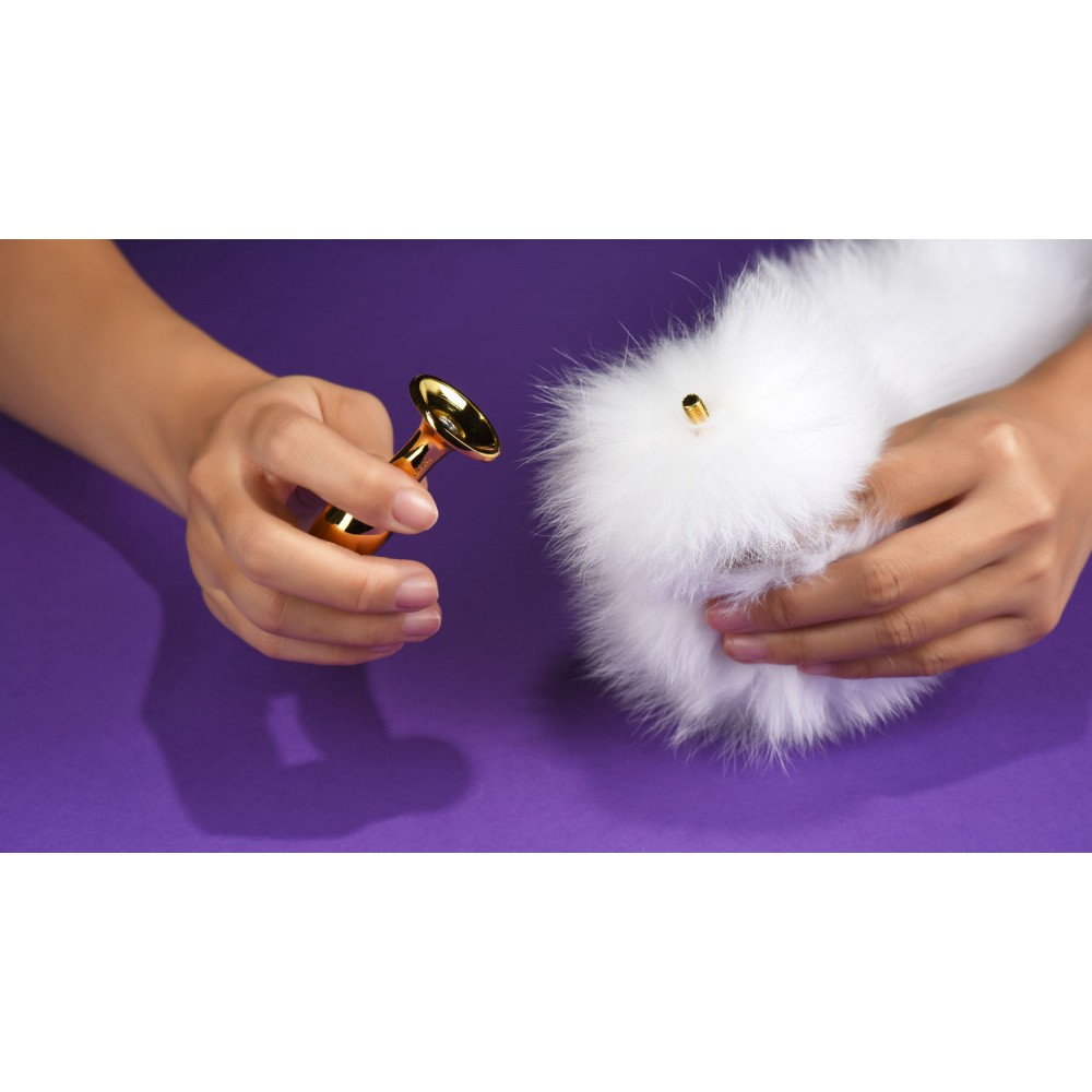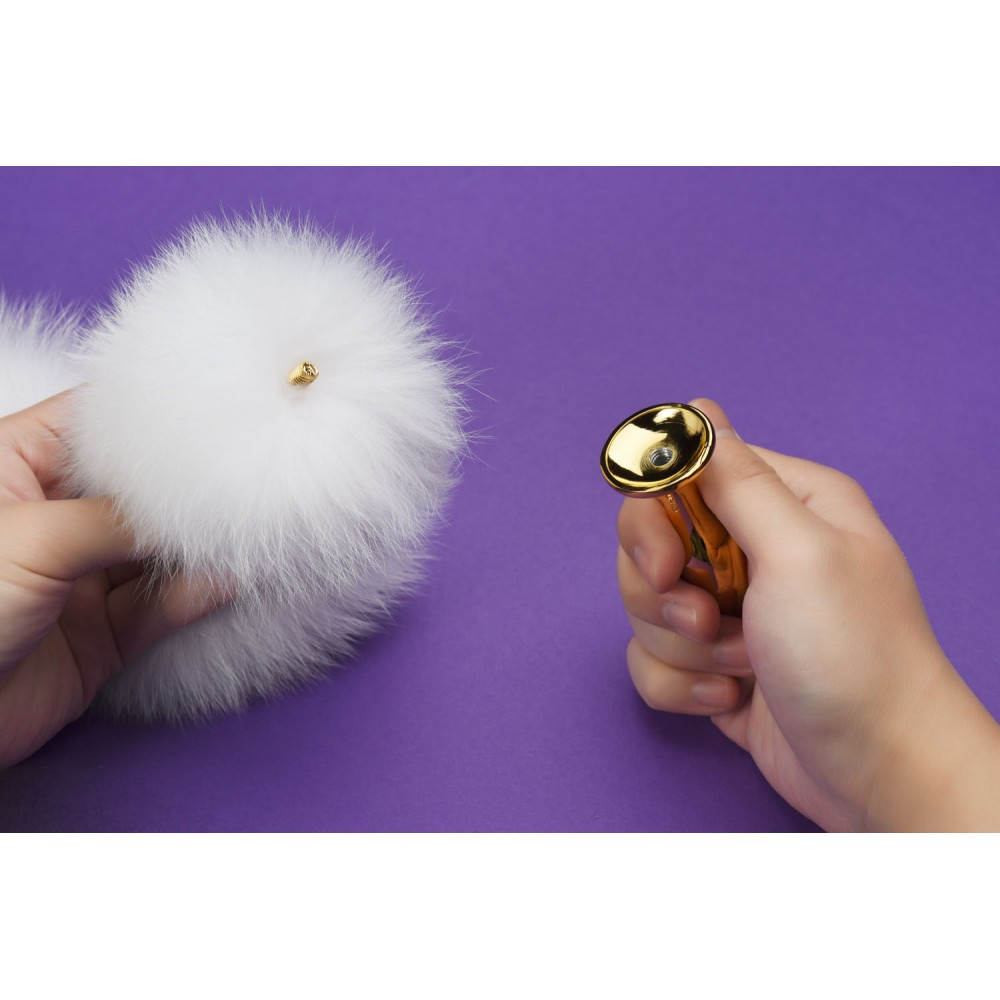 Анальна пробка золотистого кольору з довгим білим хвостом із лисячого хутра Upko Авокадо