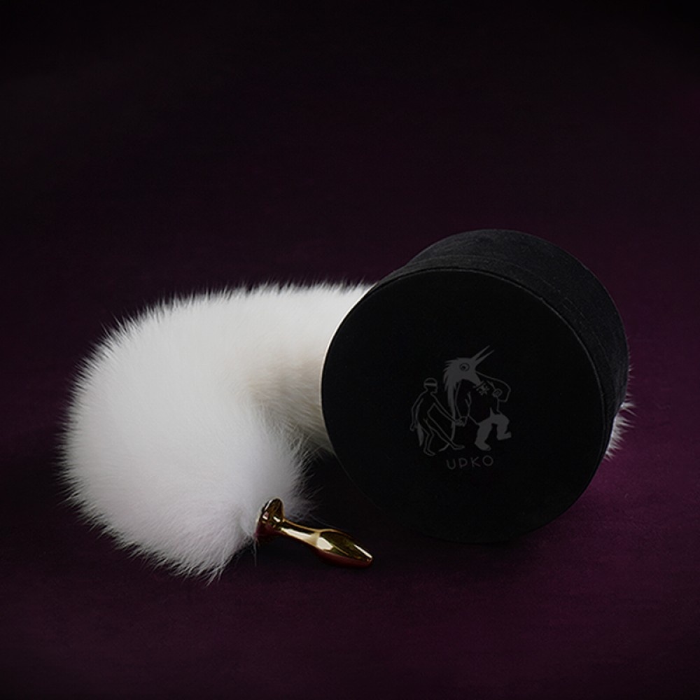 Анальна пробка UPKO з довгим білим хвостом з лисячого хутра