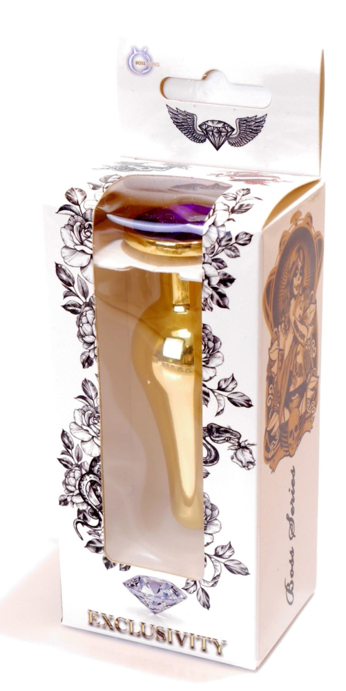 Анальна пробка золотистого кольору із кристалом фіолетового кольору BOSS of TOYS Jewellery BUTT plug Авокадо