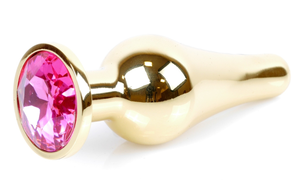Анальна пробка золотистого кольору та малиновий кристал BOSS of TOYS Jewellery BUTT plug Авокадо