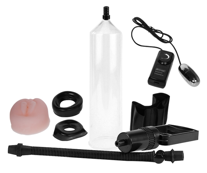 Автоматична вакуумна помпа для збільшення пеніса з вібрацією прозорого кольору в комплекті з насадкою вагіна LYBAILE BAILE Penis Enlargement System BM-010067 Авокадо