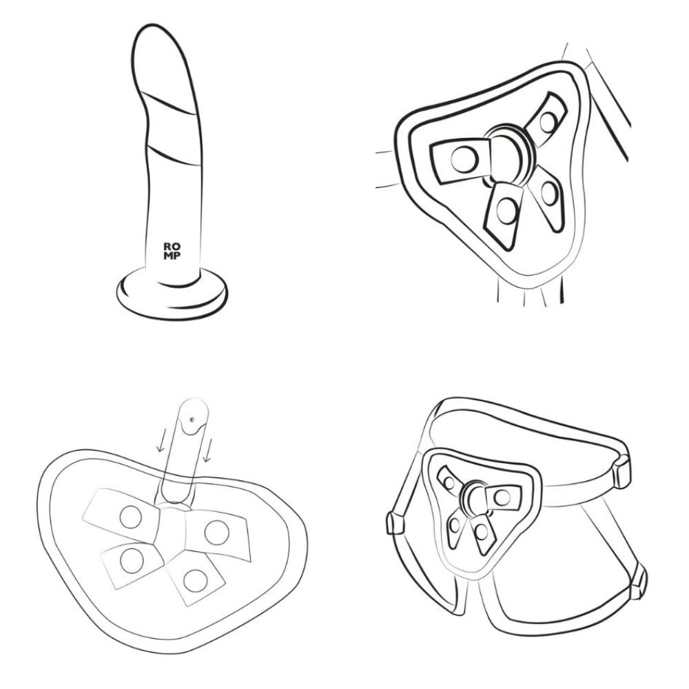 ROMP Dizi сумісний із кріпленнями для страпону, його можна використовувати як для пеггинга, так і як дилдо. Здійсніть фантазії в реальність!