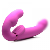 Цей страпон без бретельок ідеально підходить для проникнення у вашого партнера-чоловіка чи жінку! Цією моделлю можна керувати дистанційно, і вона оснащена, крім інших функцій, зовнішньою вібрацією та надувною вагінальною кулькою для ідеальної посадки. Вставляючи і утримуючи цю вагінальну кульку, яка також є найменшою частиною страпону, ви тренуватимете м'язи тазового дна. Унікальною особливістю цього страпона без бретелів є те, що ви можете надувати його здалеку за допомогою пульта дистанційного керування. Крім того, він поставляється із вбудованим стимулятором клітора у вигляді ребристої поверхні. Тим часом, найдовша секція гарантує, що ваш партнер зазнає чудових вібрацій. Завдяки двом потужним двигунам цей страпон без бретельок принесе вам приголомшливе задоволення! Точки G та P-spot будуть дивовижно стимулюватися за допомогою вигнутого кінчика страпону. Двигуни потужні, з 3 швидкостями та 7 конструкціями. Він повністю водонепроникний і виготовлений із шовковисто-м'якого силіконового матеріалу.