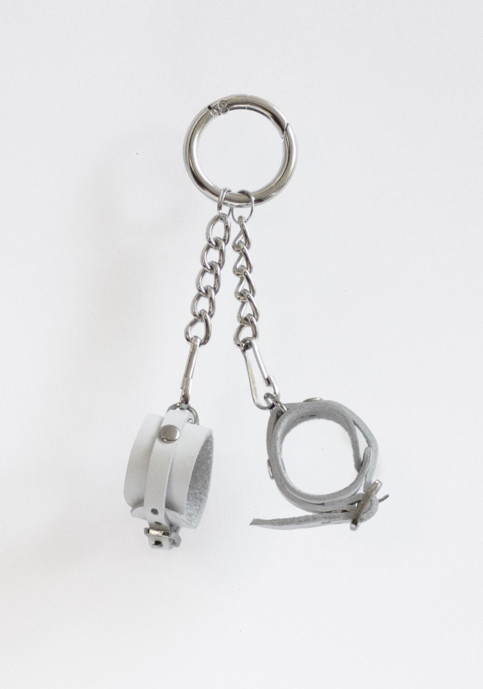 Мініатюрна версія наручників виготовлена з натуральної шкіри рослинного дублення. Кожен наручник кріпиться до основного кільця-карабіну ланцюжком і міні-карабіном, тому можна носити тільки один наручник, а другий — подарувати своєму партнерові в якості символу.