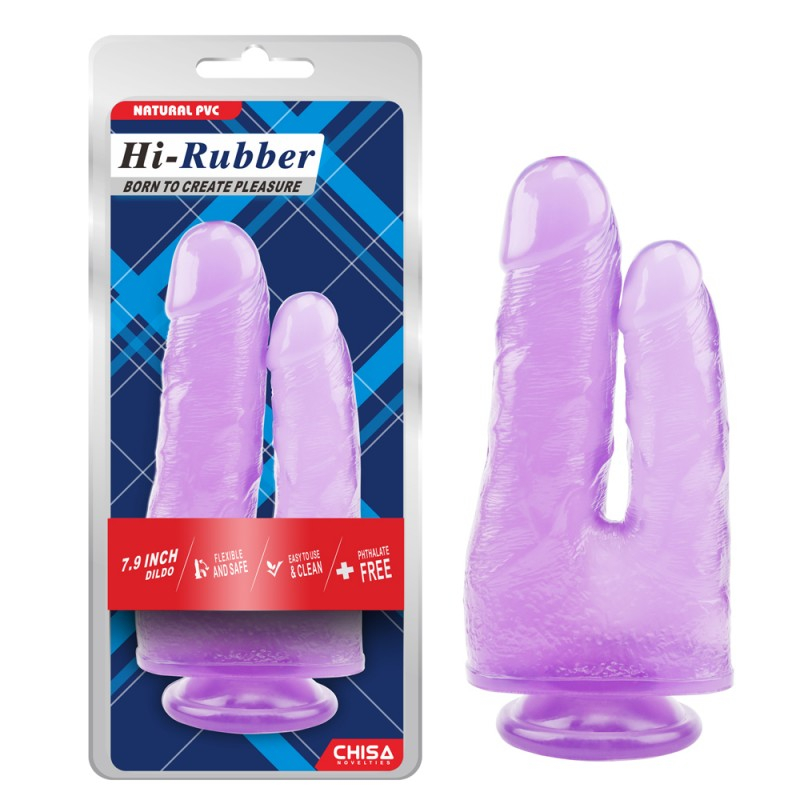 Подвійний фалоімітатор реалістичний на присосці фіолетового кольору Chisa довжина 230 мм Авокадо