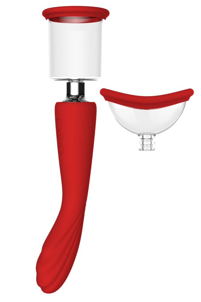Цей подвійний стимулятор має функцію всмоктування з одного боку із 2 змінними присосками для статевих губ, клітора, сосків та інших ерогенних зон.