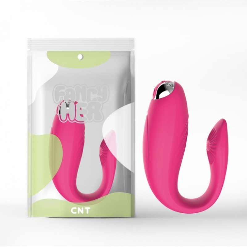 Вібратор для пари вагінальний з відростком для клітора силіконовий малинового кольору Cnt Авокадо