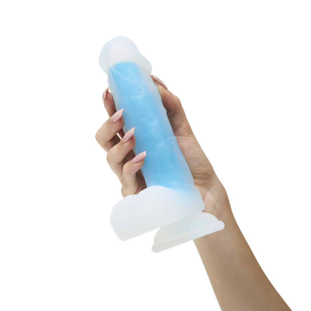 Фалоімітатор на присоску So Divine Blue Mamba виготовлений з двох видів силікону і відрізняється від аналогів дивно реалістичним, схожим на справжню шкіру зовнішнім силіконовим покриттям і міцною, але гнучкою яскраво-блакитний серцевиною.