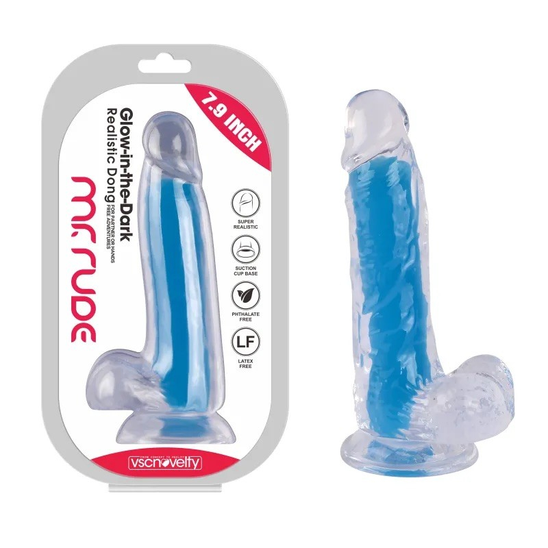 Фалоімітатор, що світиться на присосці Glow-in-the-Dark Dong Mr. Rude 7.9 блакитний Авокадо