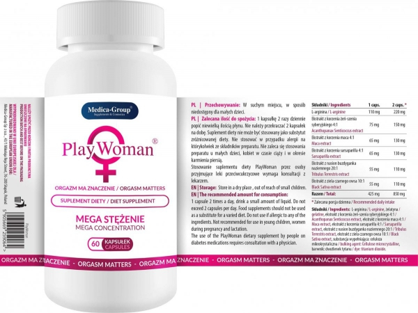 PlayWoman – це біологічно активна добавка, створена спеціально для жінок, які бажають покращити свій сексуальний досвід, насолодитися задоволенням, яке дає їм партнер, та насолоджуватися життям. З цією метою було розроблено формулу на основі висококонцентрованих екстрактів (концентрація до 20:1) для підтримки сексуальної активності. Дія інгредієнтів ґрунтується на оптимальному збільшенні припливу крові до судин у структурі інтимних зон.