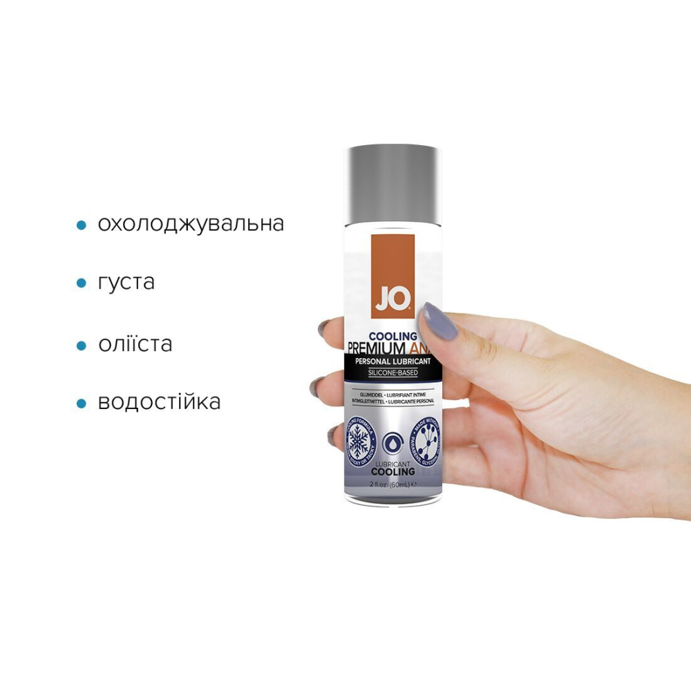 Лубрикант на силіконовій основі System JO ANAL PREMIUM-COOLING (60 мл) з охолоджуючим ефектом— це інтимний лубрикант на основі силікону, призначений для зволоження і підвищення комфорту під час інтимних ласк. Забезпечує довгий ніжне маслянисте ковзання, водостійкий; підходить для ласк в нестандартних умовах і гарантує нічим не переривається насолоду.