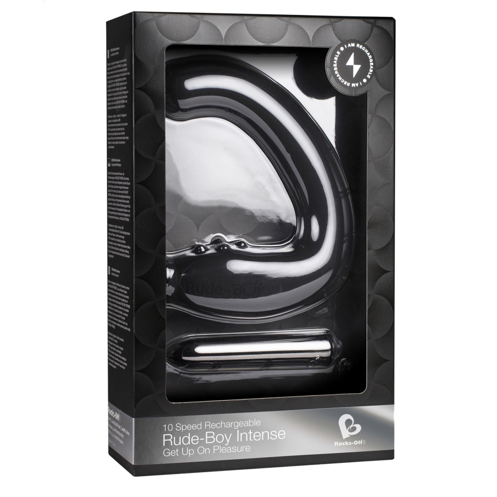 Пропонувати Ви купити інтенсивний масажер простати і промежини Rocks Off Rude Boy Intense , який є модернізованою версією масажера простати Rude Boy і має 10ти швидкісну, перезаряджається кулю, яка відмінно поширює вібрацію по всьому масажеру.